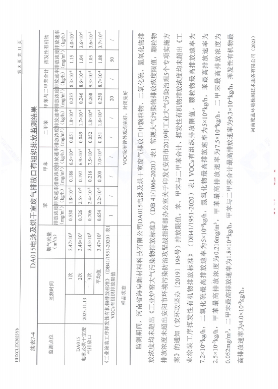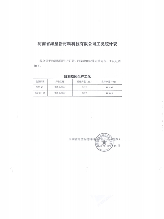 河南省海皇新材料科技有限公司2023年度危險(xiǎn)廢物信息一覽表