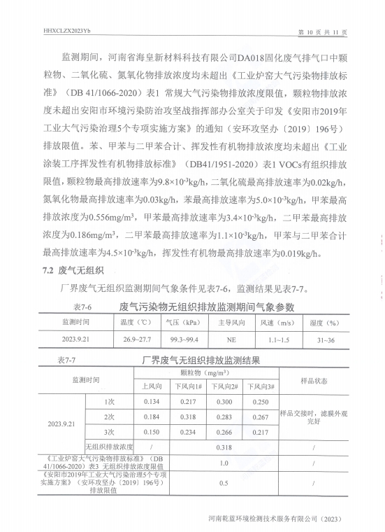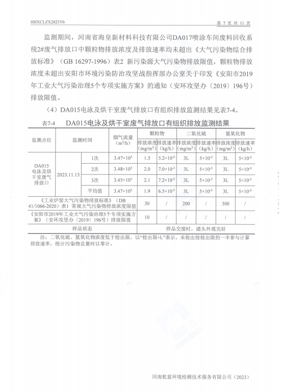 2023年下半年自行檢測報(bào)告